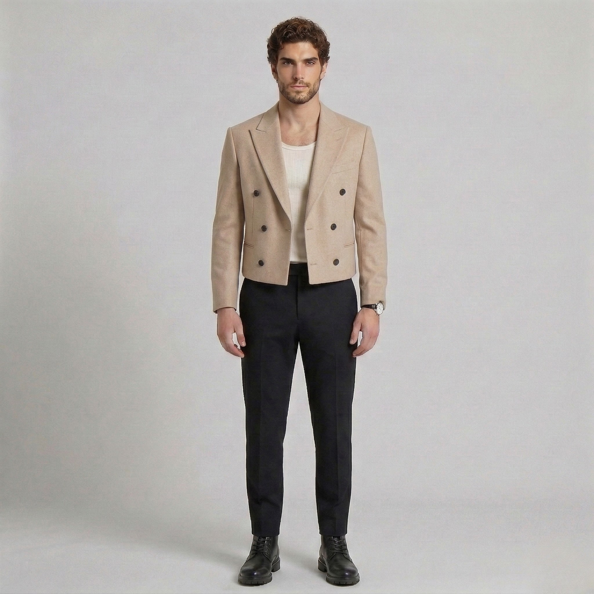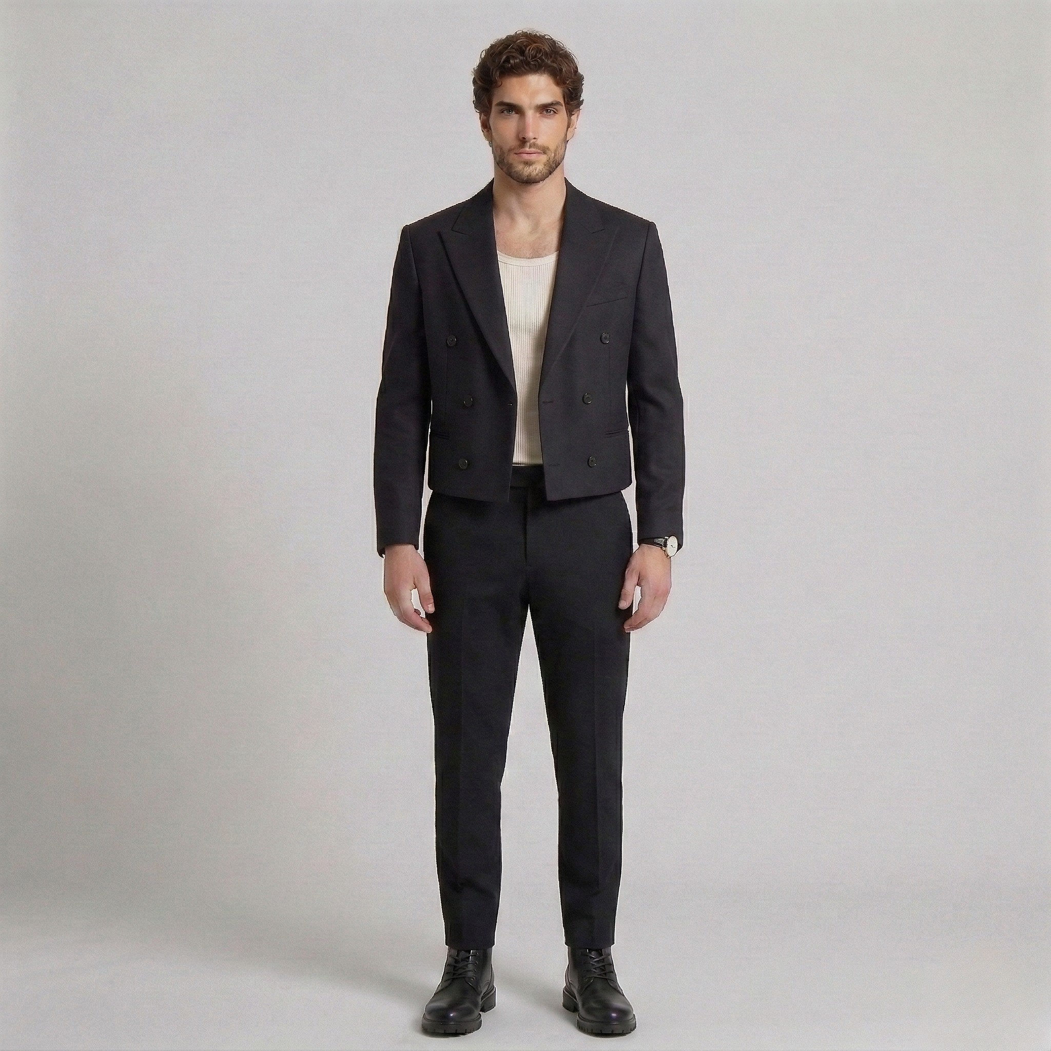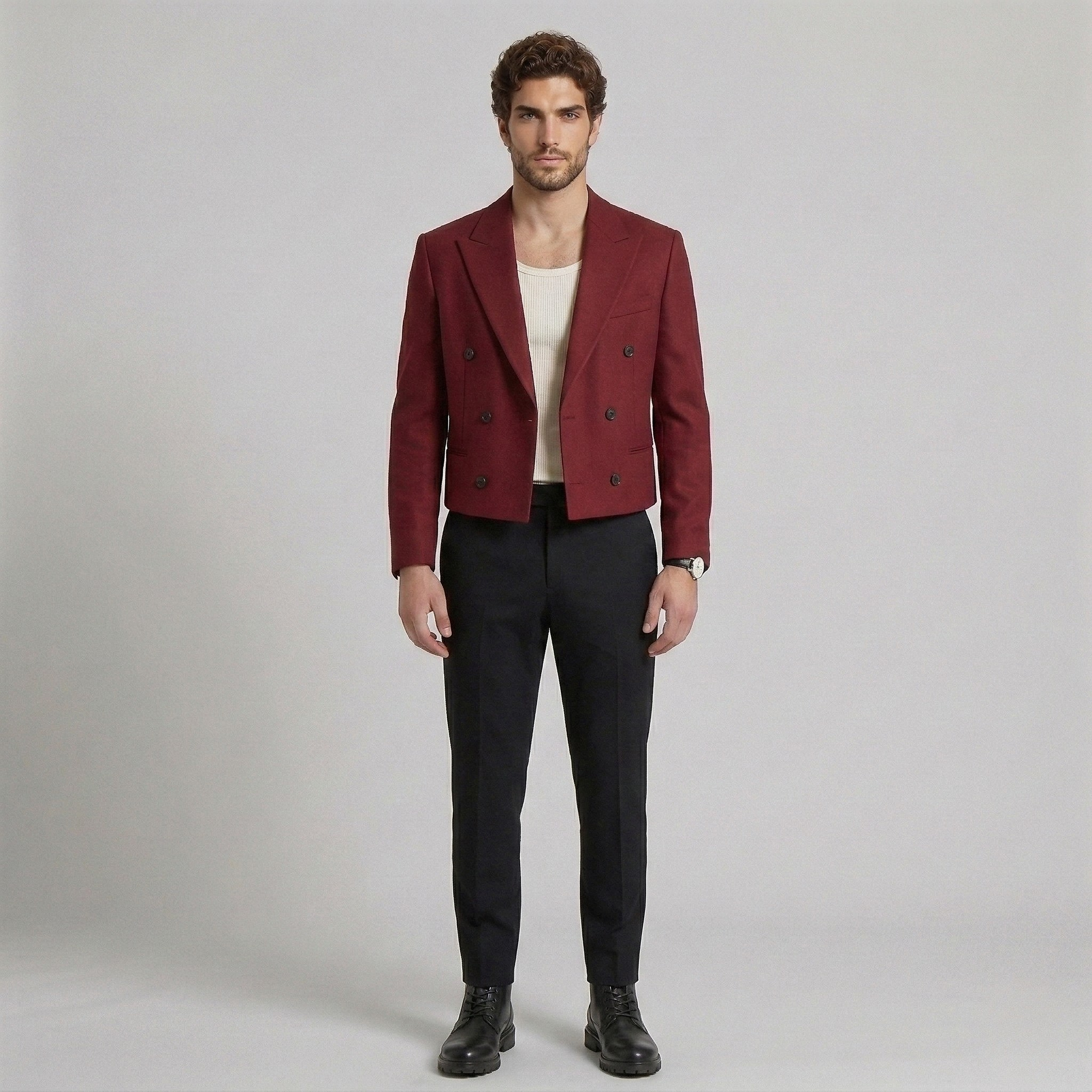 Kort, dobbeltradet skræddersyet blazer