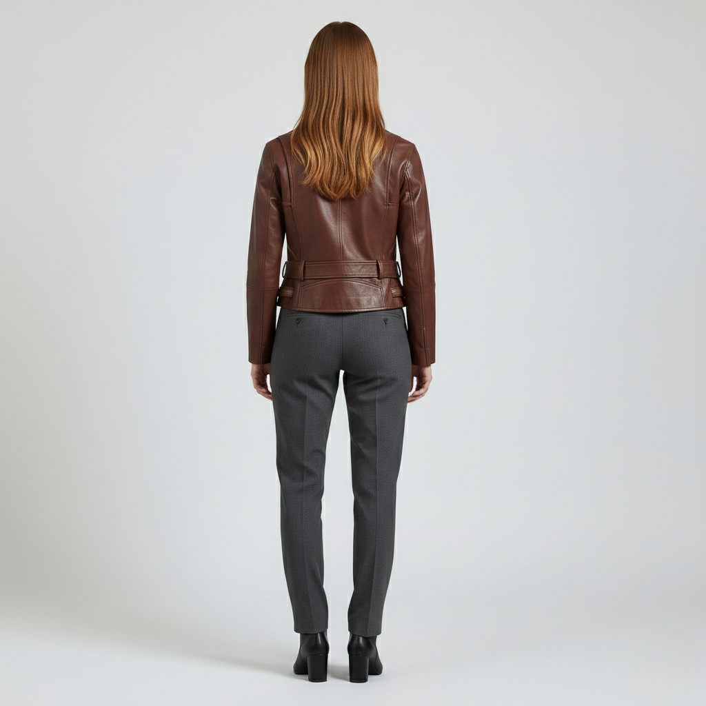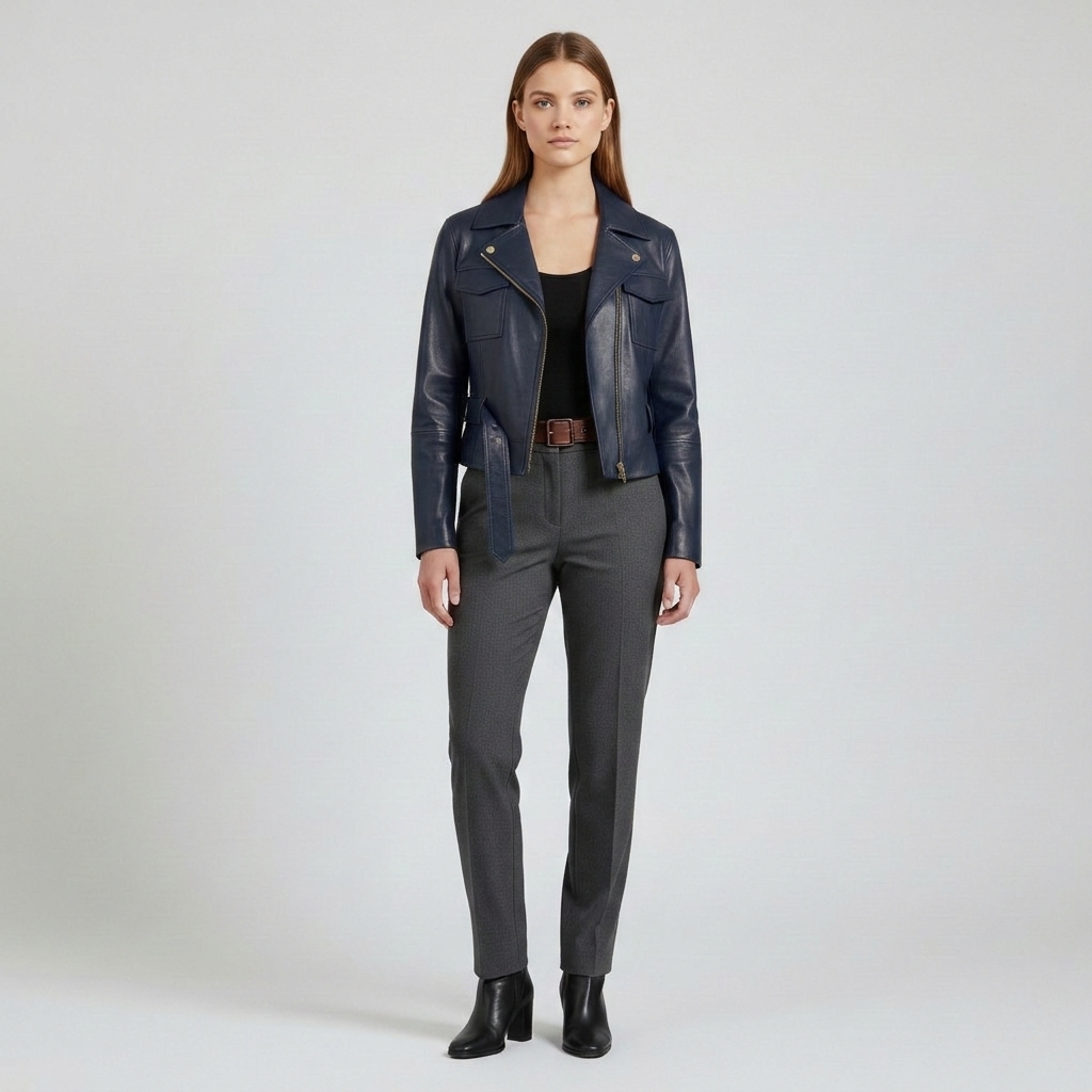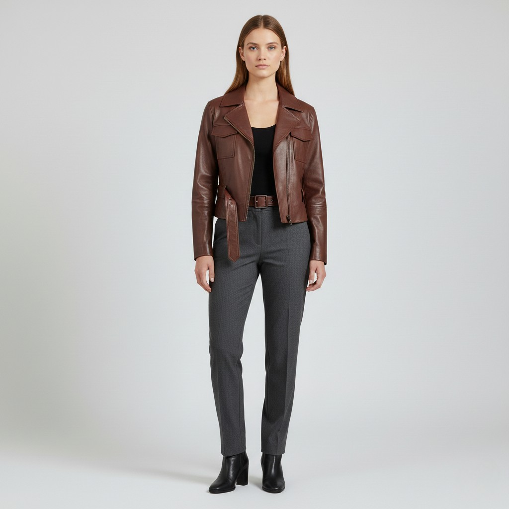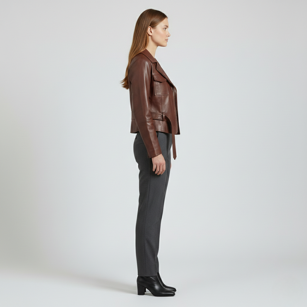 Kort læderjakke med bælte