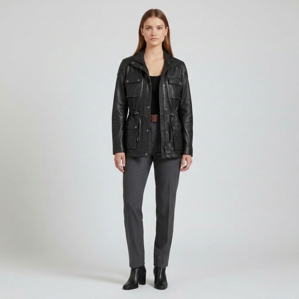 Kort læderjakke i utility-stil