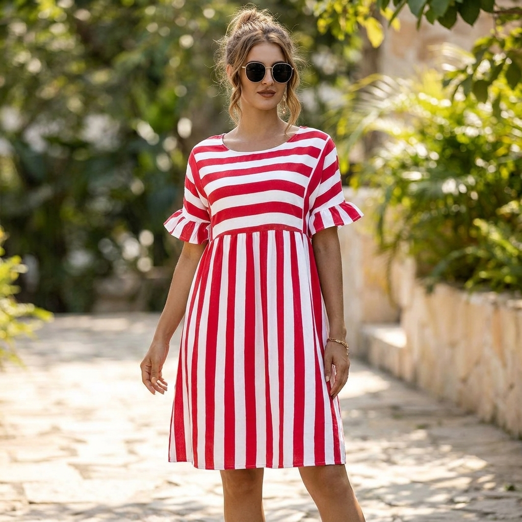 Kjole med Stribet Design | Løs Pasform | Let & Afslappet Stil