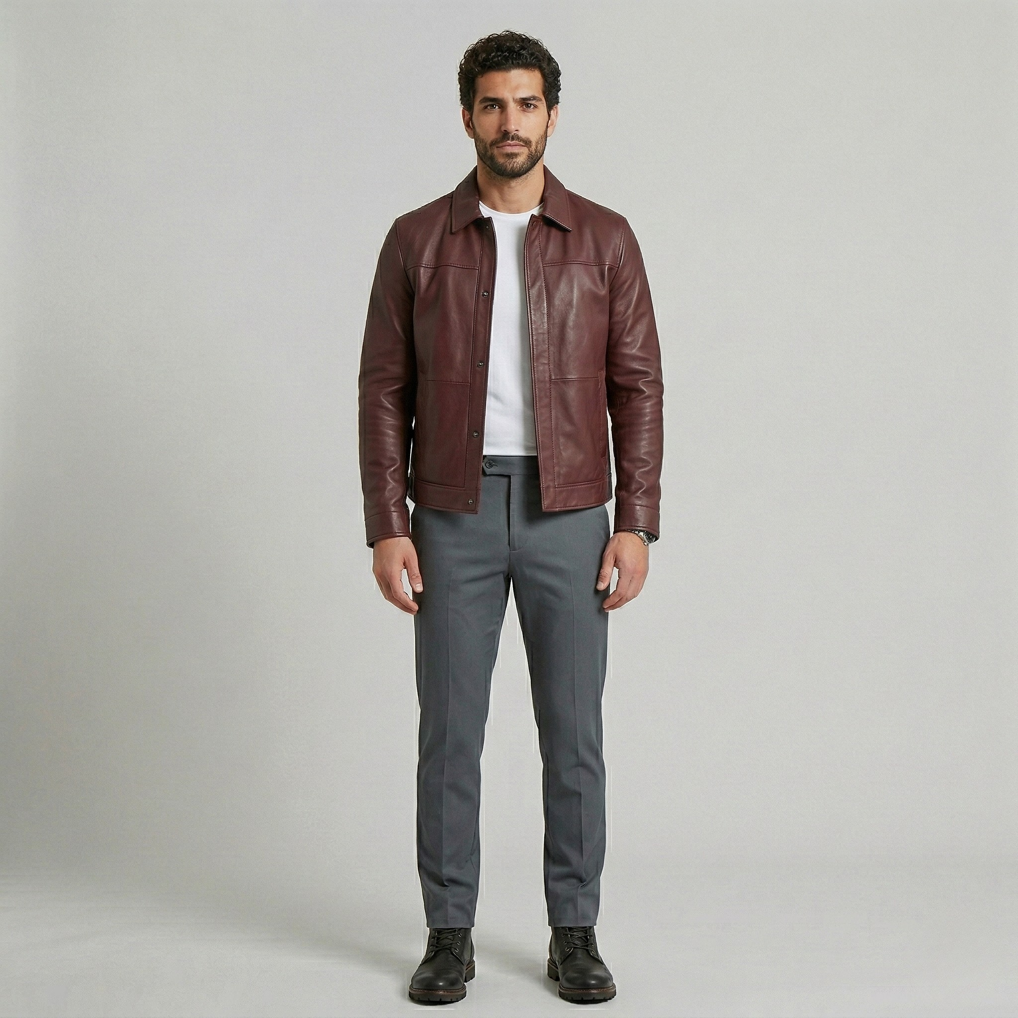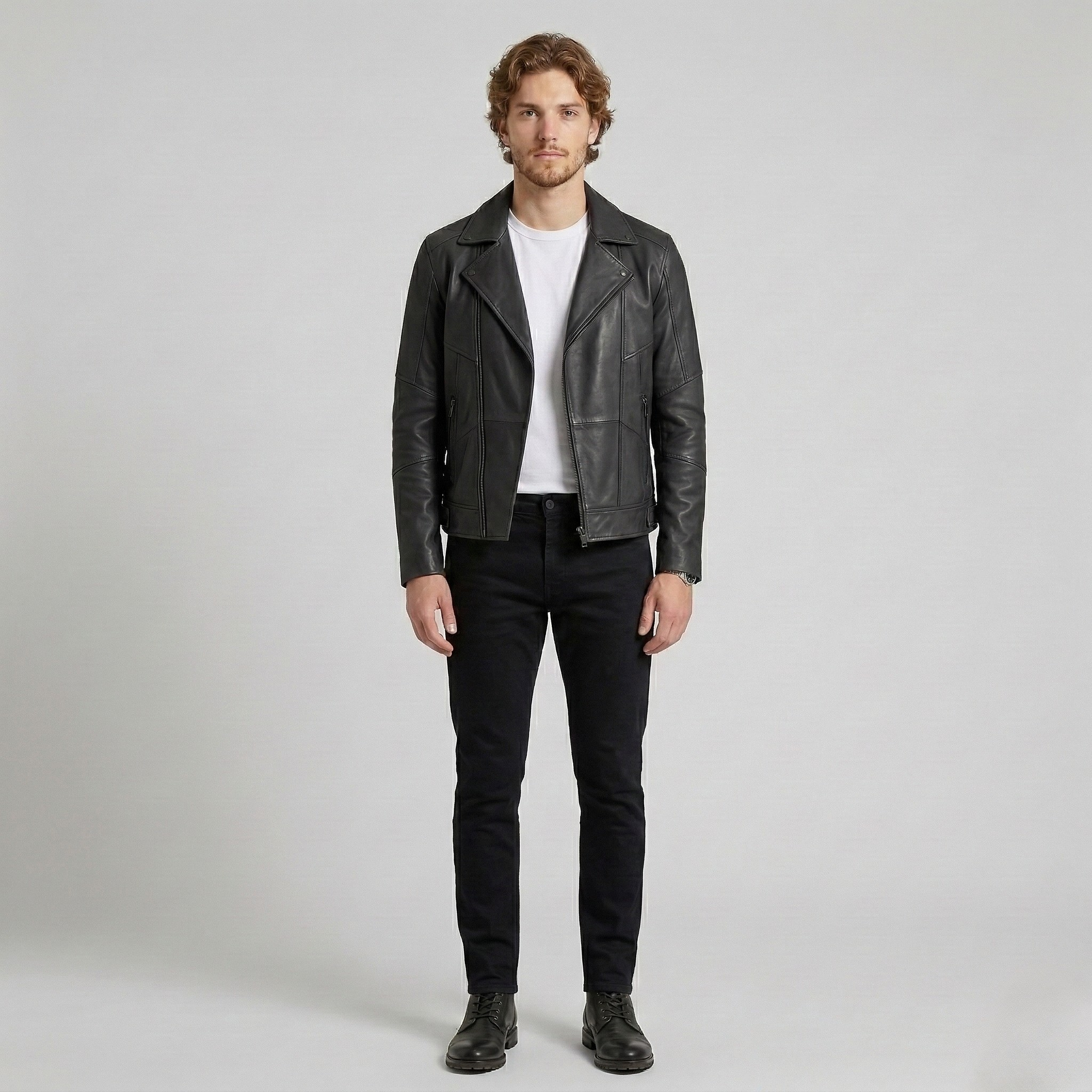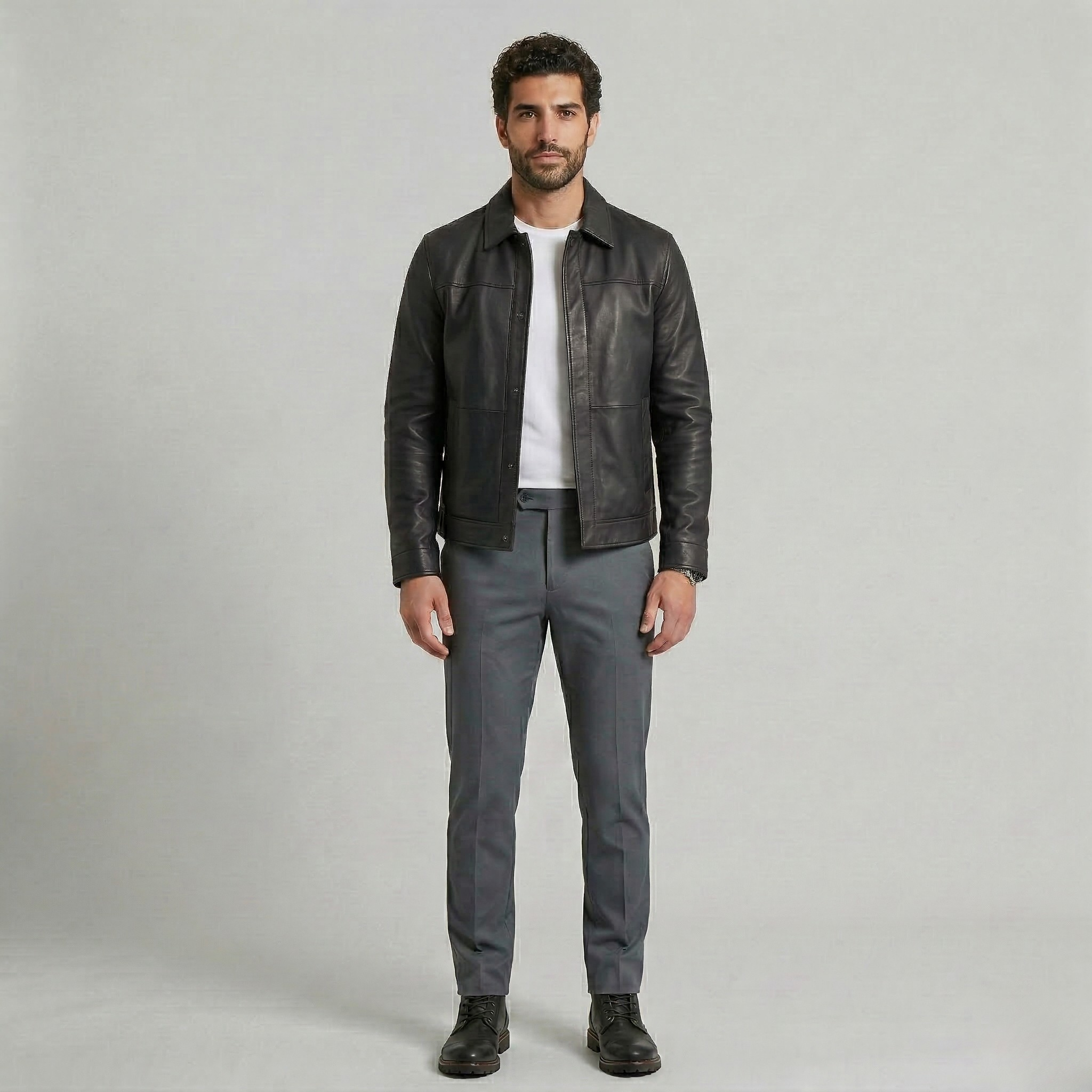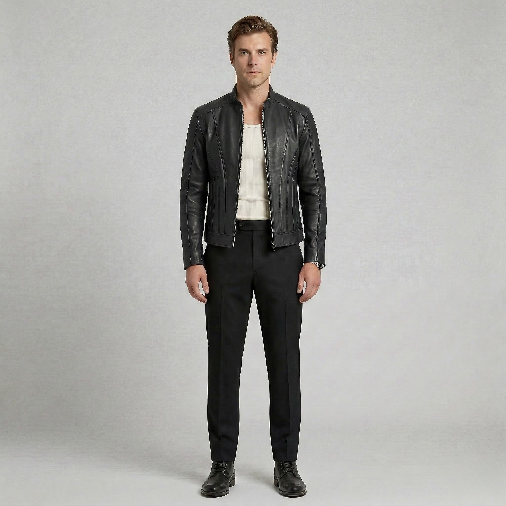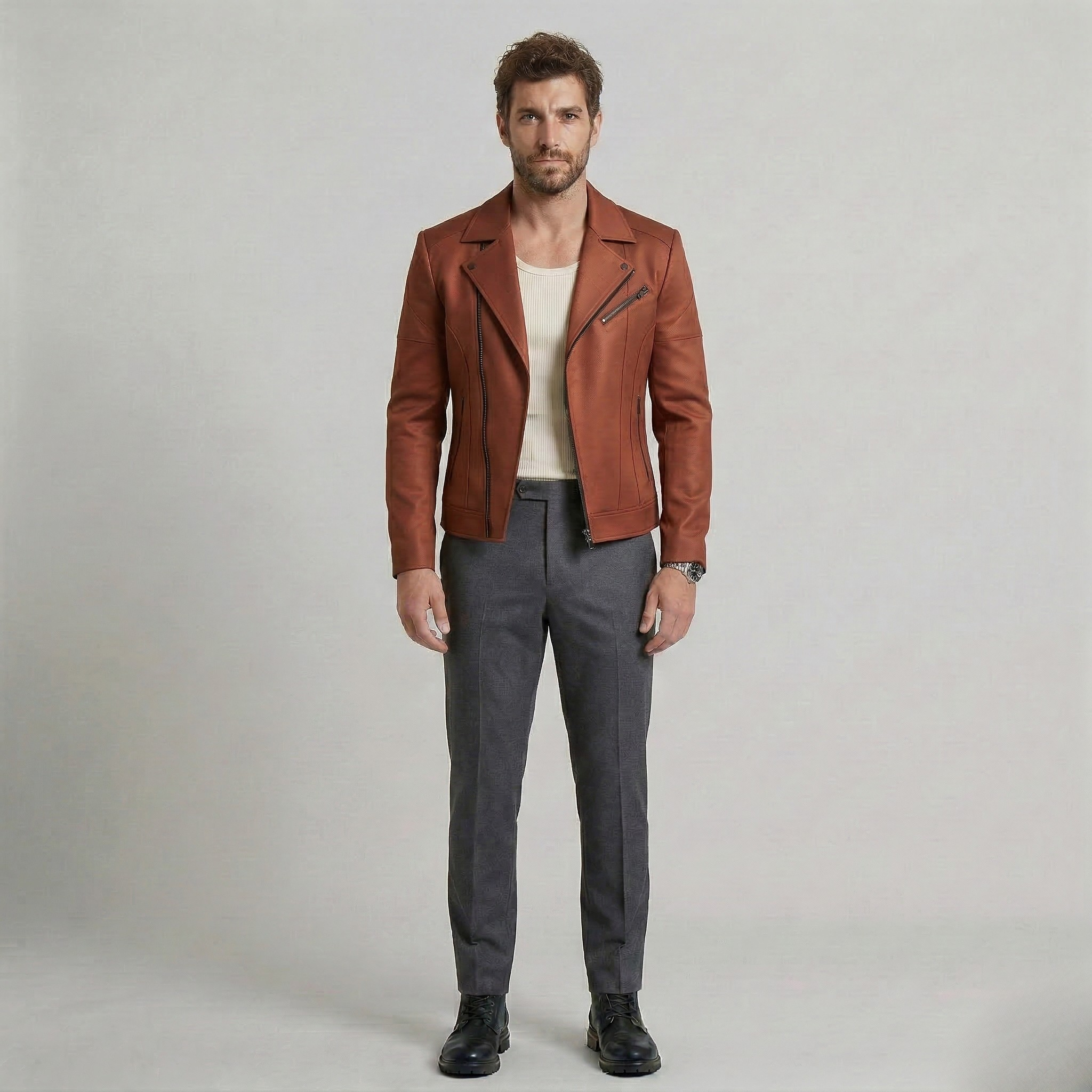 Struktureret minimalistisk læderjakke