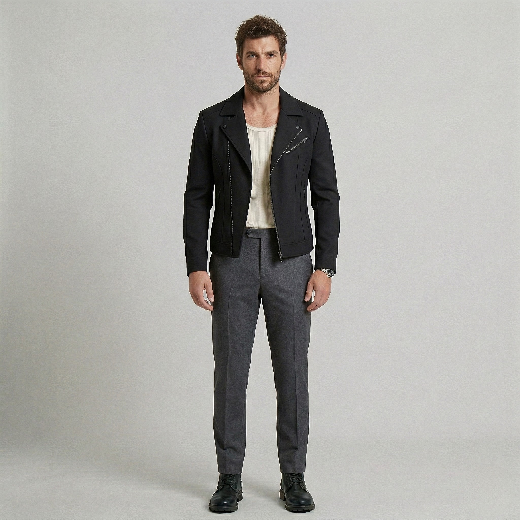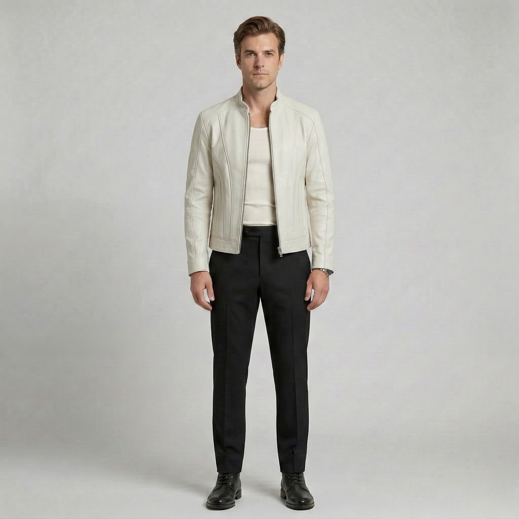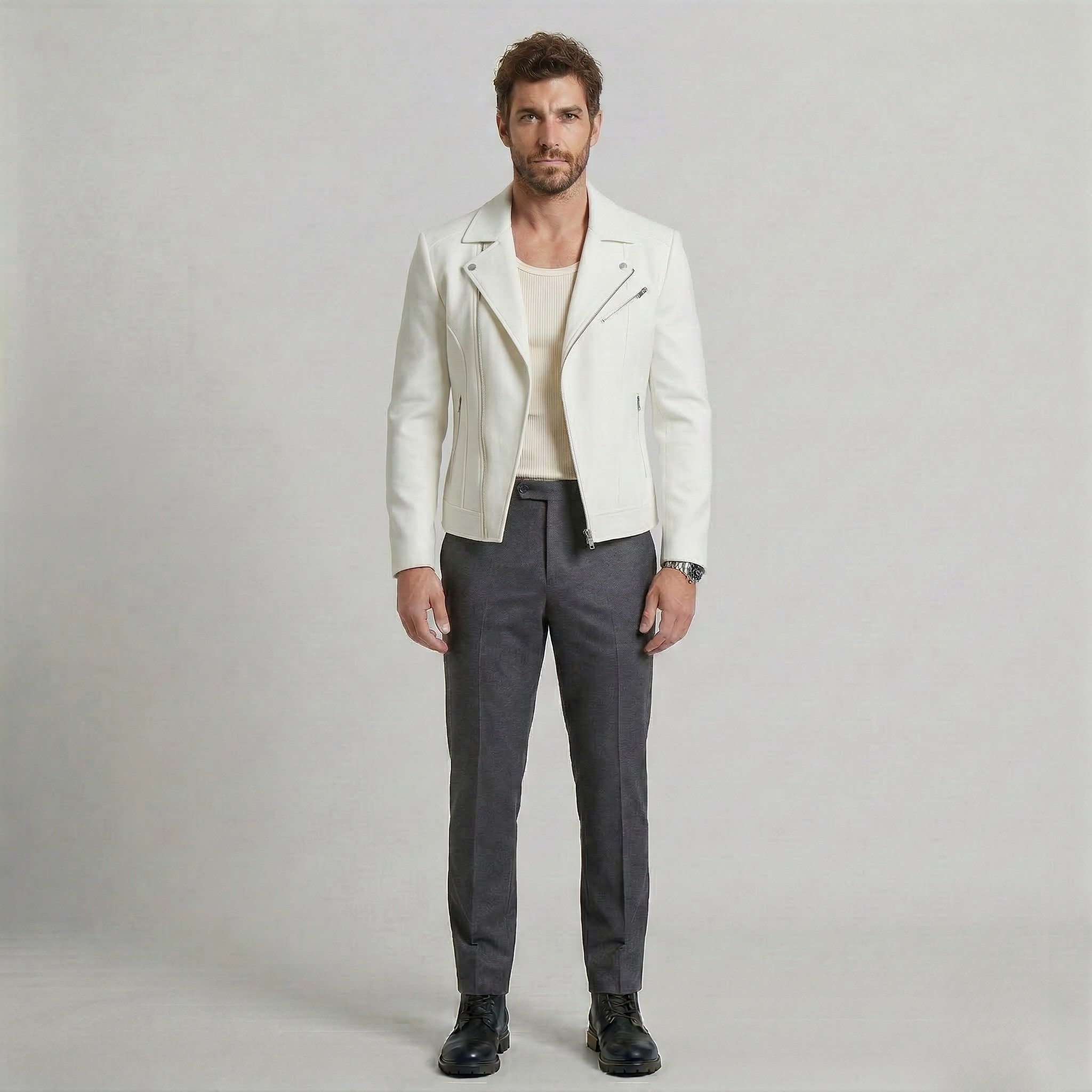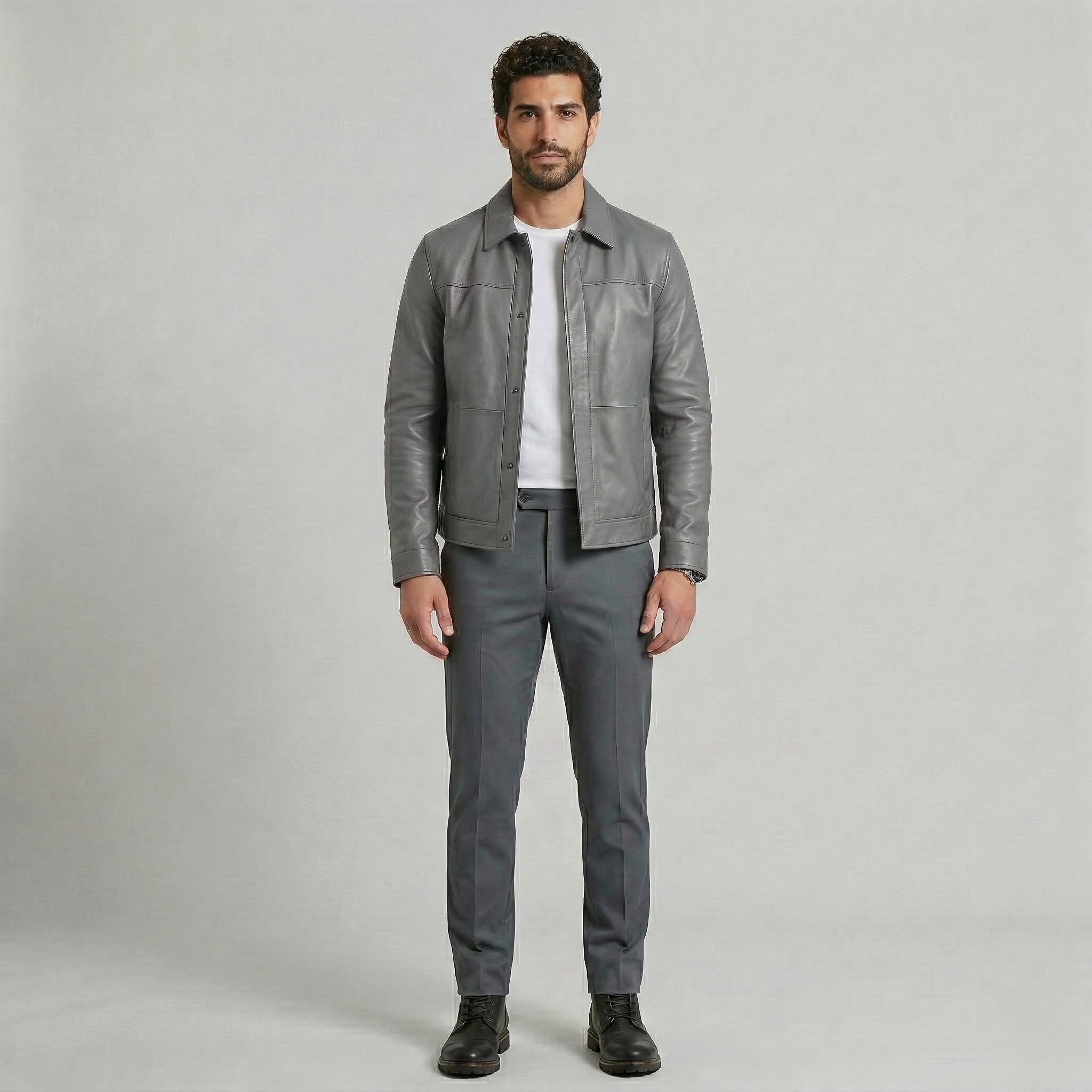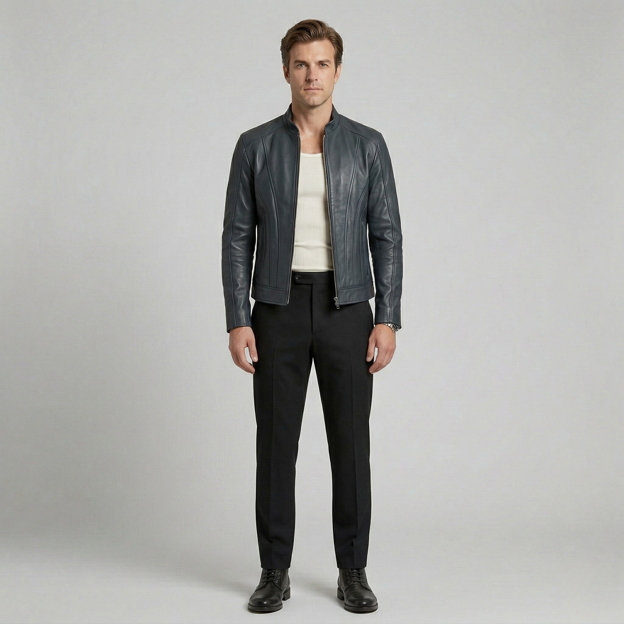Struktureret minimalistisk læderjakke