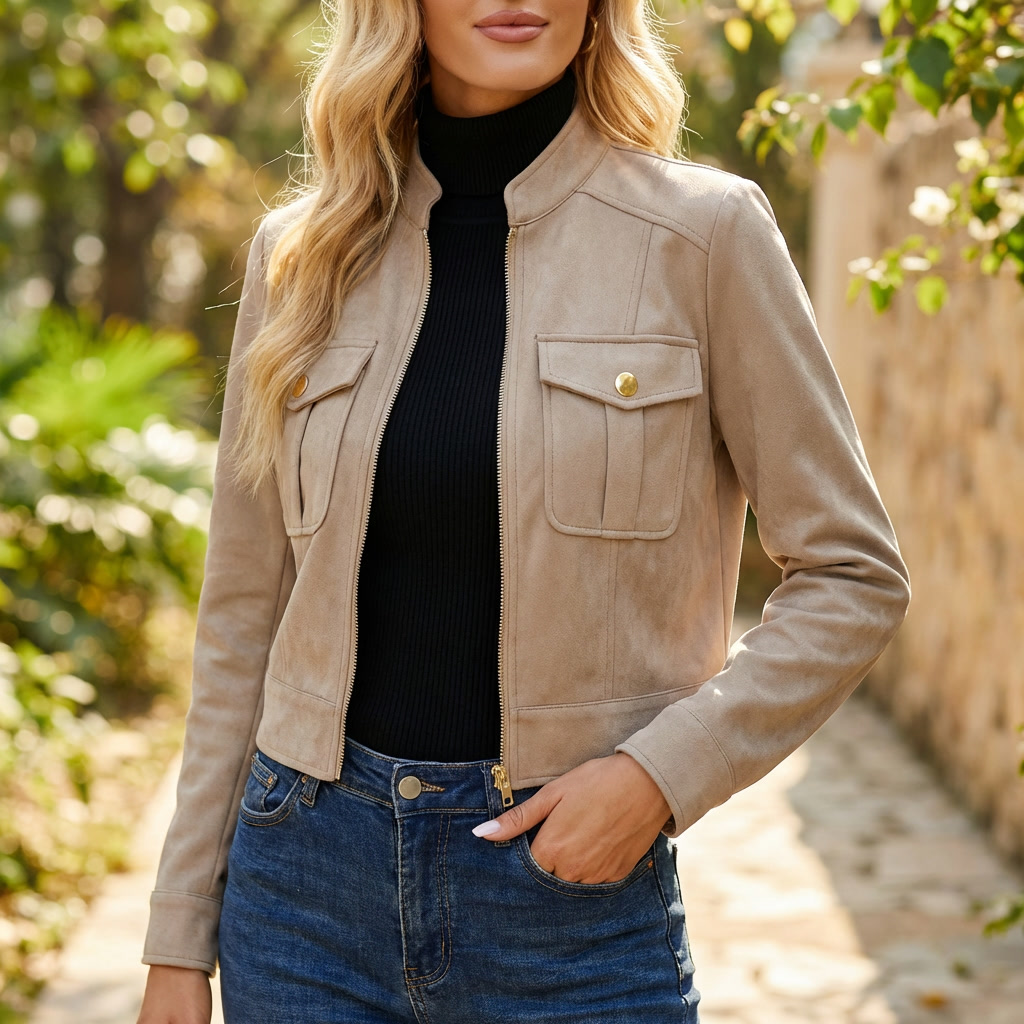 Jakke med Lynlås | Brystlommer Design | Moderne & Kort Hverdagsstil