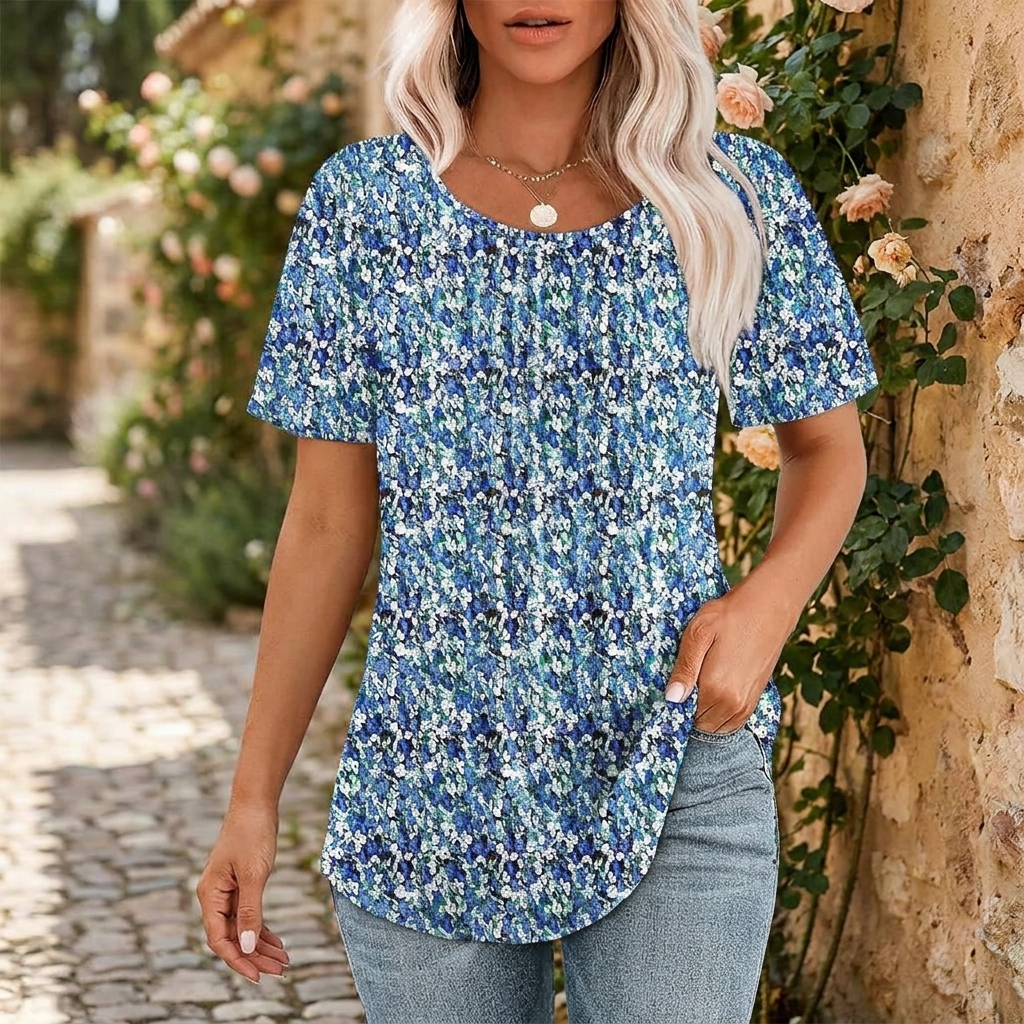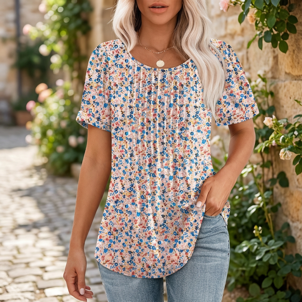 Top med Plisserede Detaljer | Rund Hals | Komfortabel & Stilren